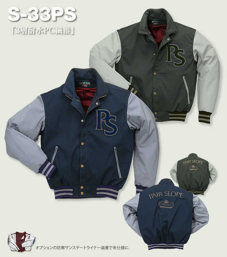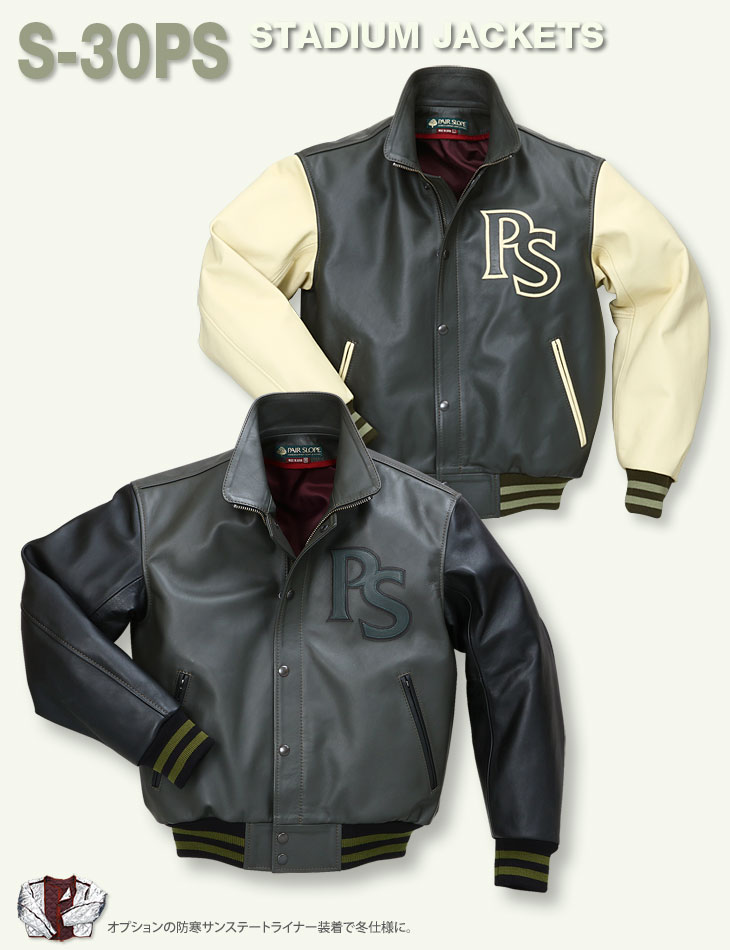 ペアスロープの革ジャンで唯一胸マークがついているのがスタジャン。これはアメリカでのチームウェア目的の流れで、背中にも大きなマークをつけているものが多い。まあ、ペアスロープの場合は少々控え目ではあるが、あなたのオリジナル文字も革で縫い付け可能なので、ご希望の方はいちばん下のご案内をご覧下さい。