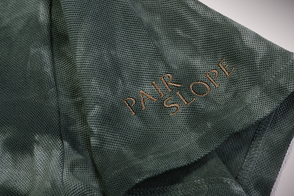 絞り染鹿の子(しぼりぞめ かのこ):Tシャツの東京染色工場の伝統的なワザ。手作業により同じ柄はありません。上質な鹿の子織りに腕刺しゅう。