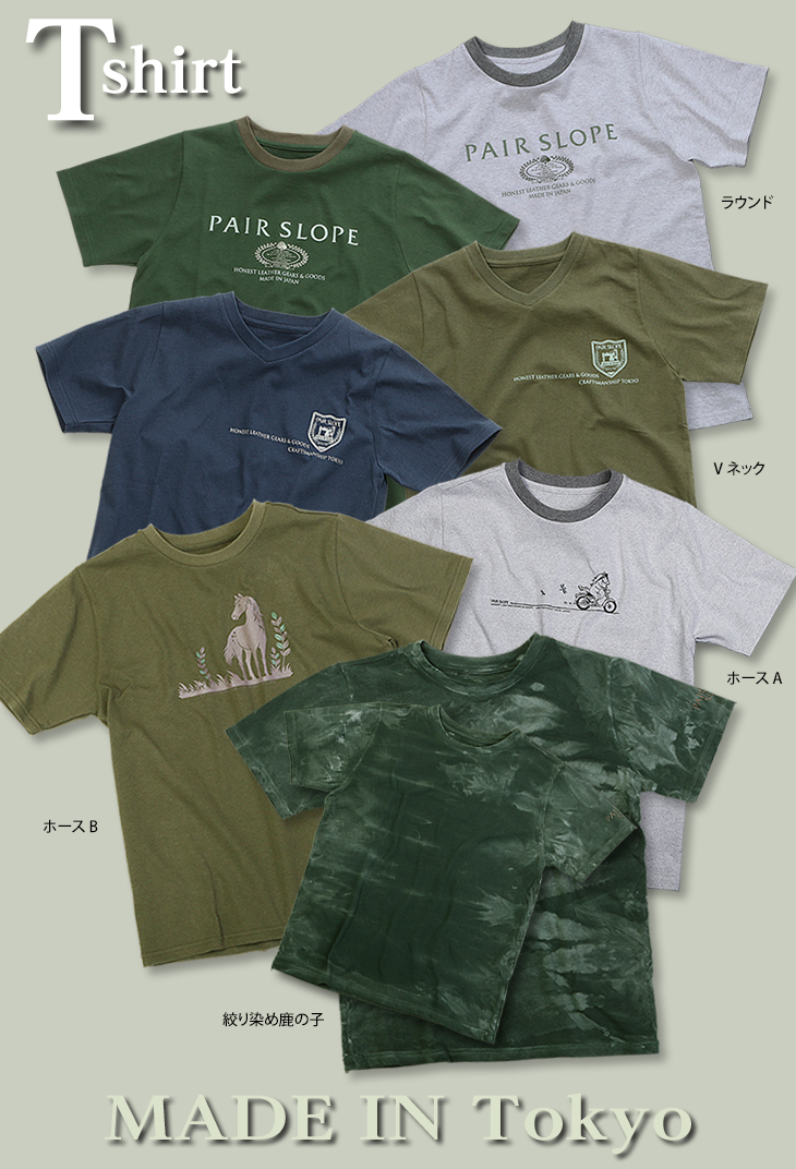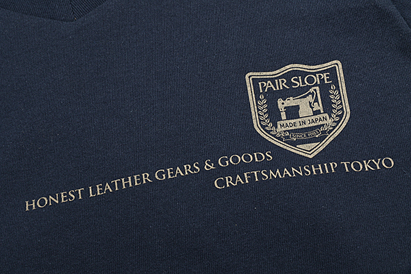 VネックTシャツ:プリントはペアスロープのシンボルマーク、ミシン。