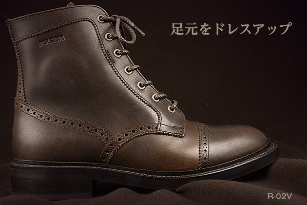 | 2008年発売R-01の一部パターン(型紙)を変更し、足入れをしやすくしたマイナーチェンジタイプ。可憐なライディングブーツのコンセプトをもとに製作した脱ぎ履き容易なジップアップタイプ。 |
