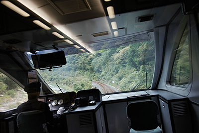 | これは2700系運転席後ろのデッキから・・・山岳地域から平野に出ると、ほぼ130km/h走行 ! |