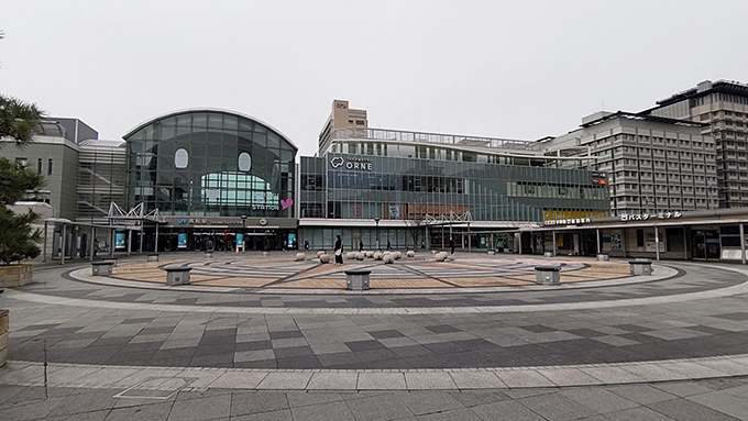 JR高松駅の正面、平日午前9時ころ。人が一人だけしかおらん、、、?
