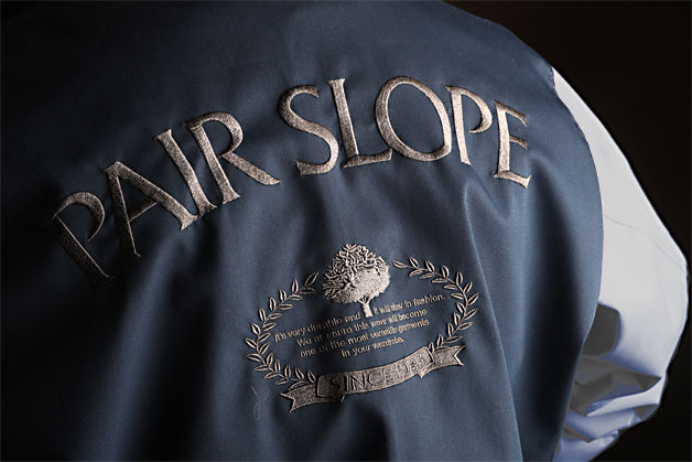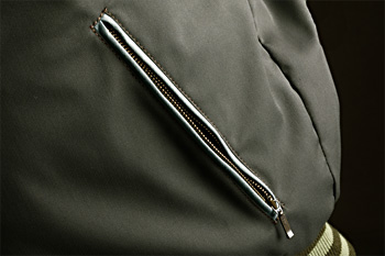 左右のポケットはファスナー式。中は深めで手が入ります。ふちの色を袖と合わせるのもペアスロープ流スタジャンのお約束。