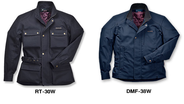 | 軽く快適な着心地+確実な保温力を重視した防寒ウェアは、用途に合わせて作り分けた2アイテム。バイクに乗らない日もアウトドアコートとして活躍するRT-30Wと、フィット感に優れ高速走行も得意なDMF-38W。いずれも、外側の冷気は遮断し、内側の熱は逃がさない断熱保温素材サンステートを使用。軽量でかさ張らずに暖かいため重ね着での保温力調整も容易で、総合力でこれに勝る保温素材はなかなか見つかりません。 |