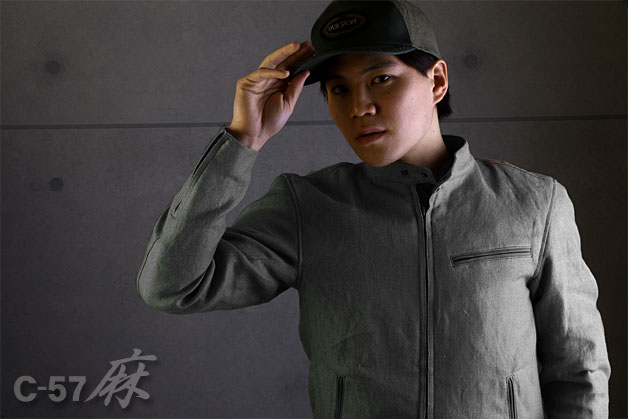 2008年に初代「RA-1」が発売し、以降毎年高い人気を保つ、表地麻100%個性派シリーズの最新モデル。好評のレザージャケット「C-57」をベースとした、すっきり着こなせるシルエットです。