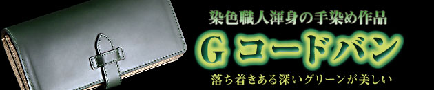 光沢控えめの渋いグリーンに染色した特別なコードバングッズ。