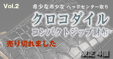 クロコダイル風の牛革ではなく、本物のクロコダイル。しかもヘッドセンター裁断は極めて希少。 |
