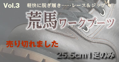 内側ジップアップの牛革ワークブーツは好評販売中。その荒馬革バージョンでございます。 |