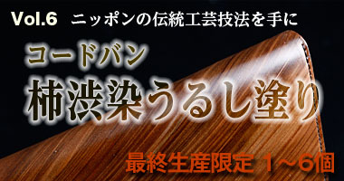 柿渋染めだけでも珍し上に、うるし塗り仕上げ。さらには革素材がコードバンという超難関。