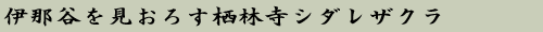 栖林寺のシダレザクラ:中央高速、国道153号の東を平行する県道18号を駒ヶ根方面より北に向かって走ると、右側の山沿いに1本の大きな桜が目に入る。その桜を目指して進めば迷うことなく栖林寺に着く。