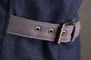 ウエスト調整用のベルトもコットン製。パーツの役割によって、他の素材の方が適している場合もあり適材適所で。